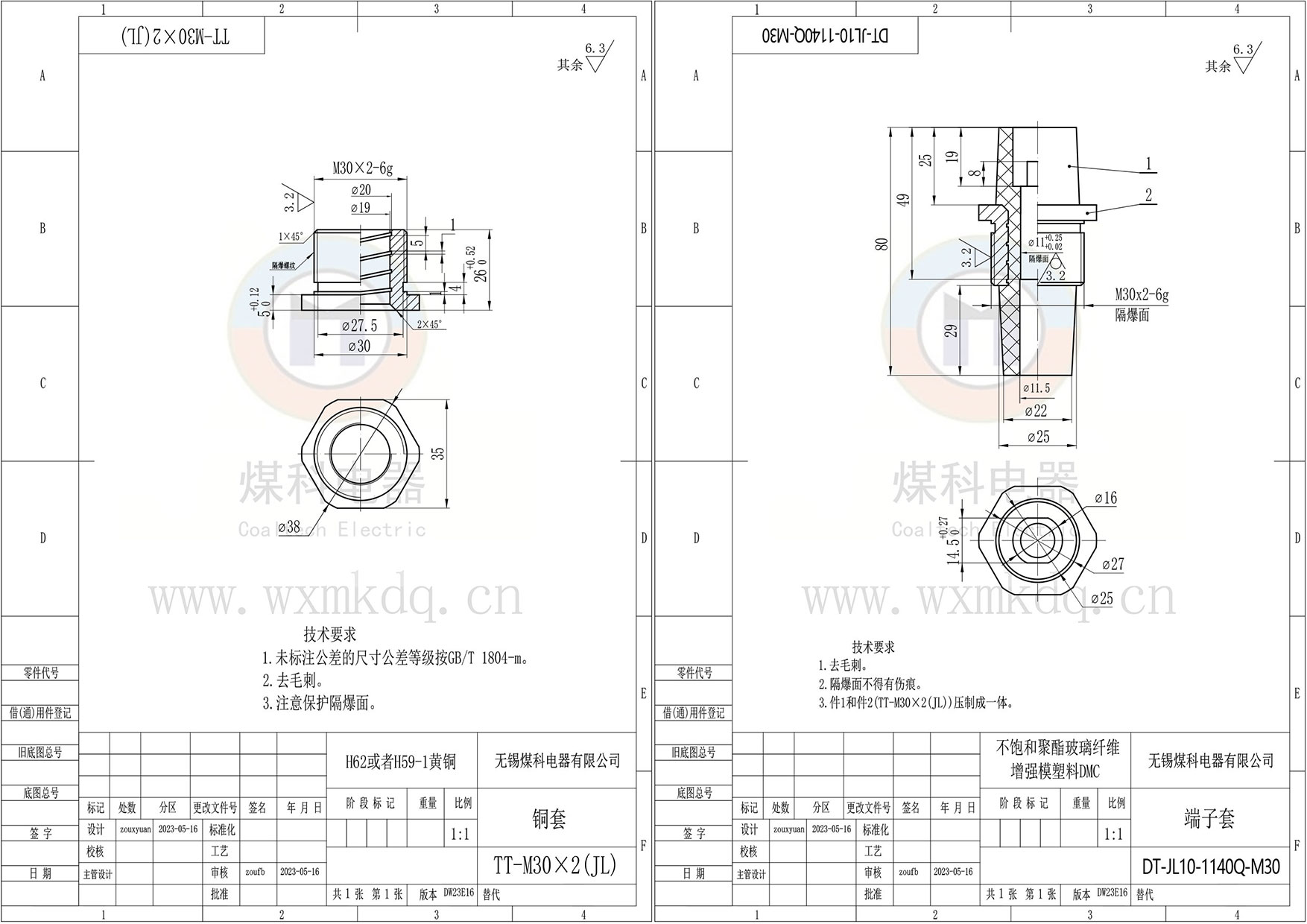 ◆ 安裝尺寸:M30x2 隔爆螺紋;