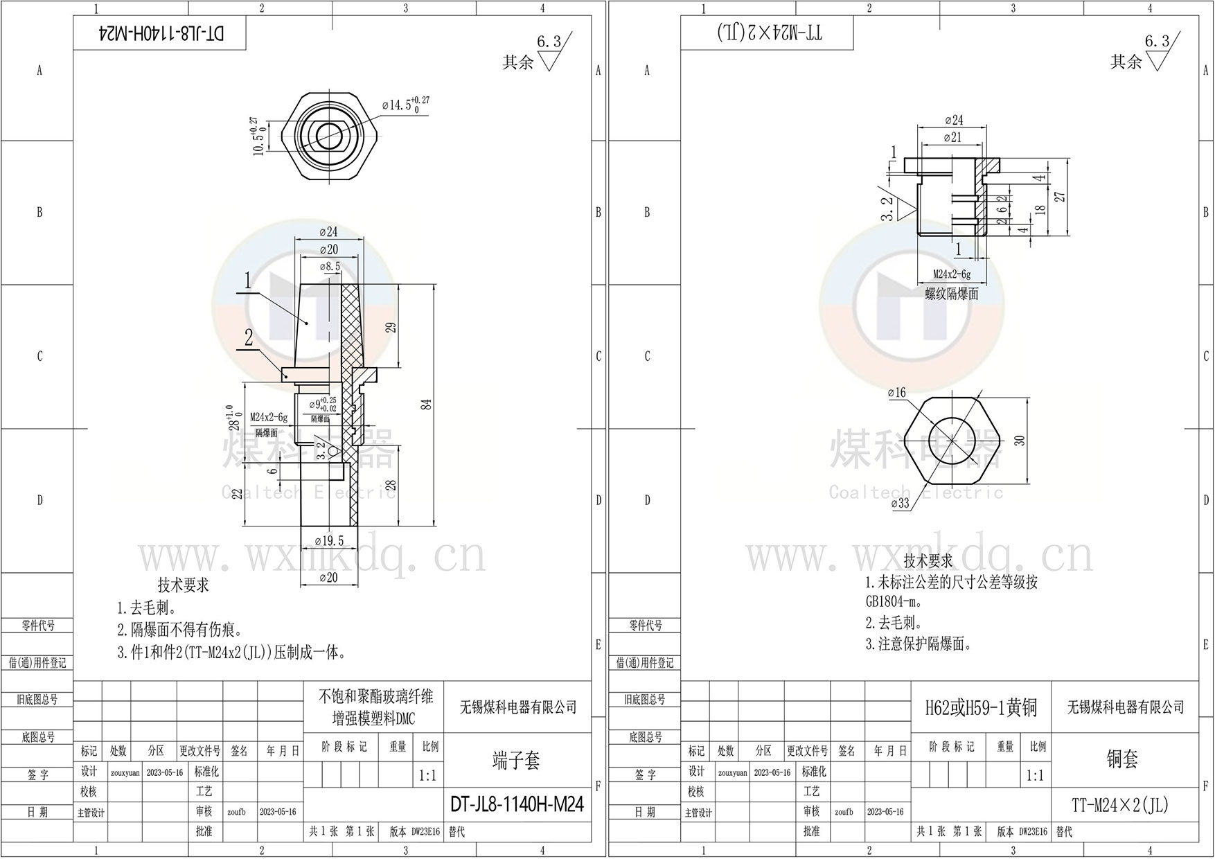 ◆ 安裝尺寸:M24x2 隔爆螺紋;