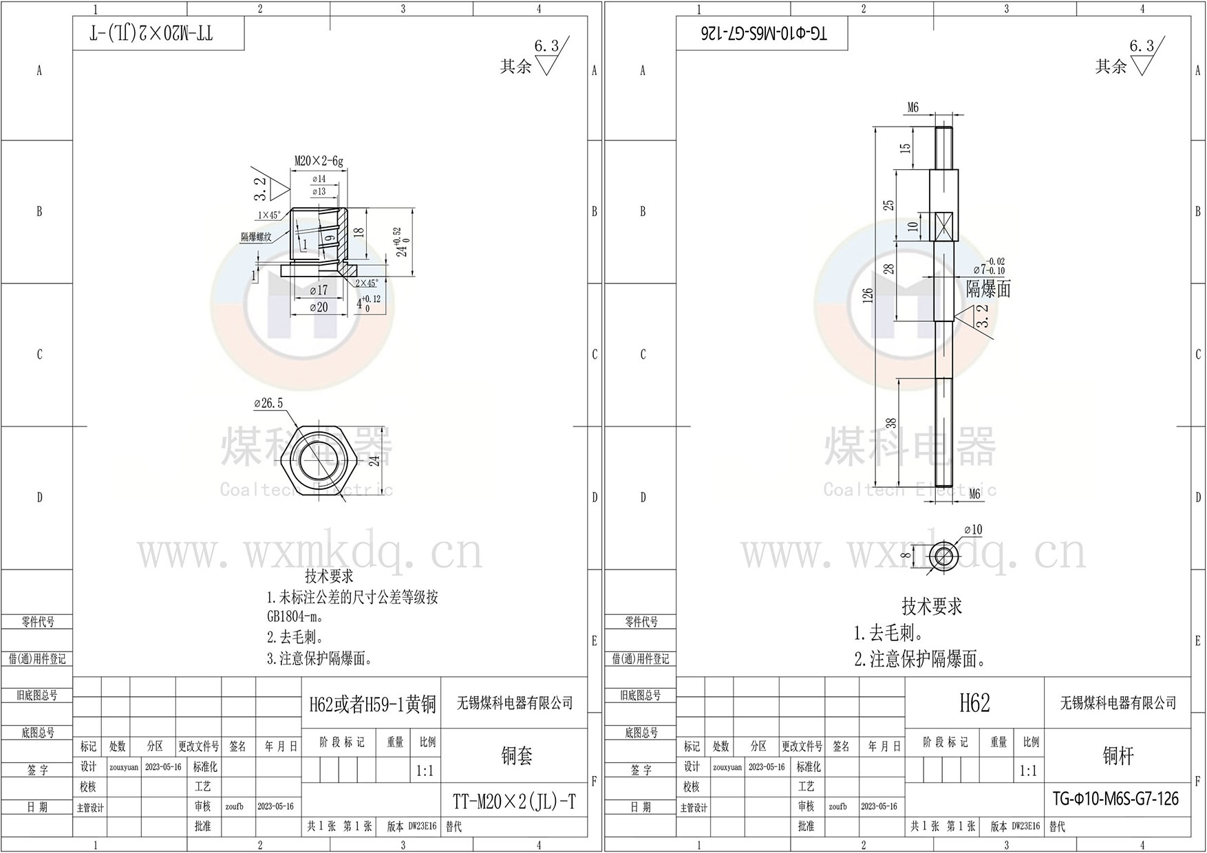 ◆ 安裝尺寸:M20x2 隔爆螺紋;