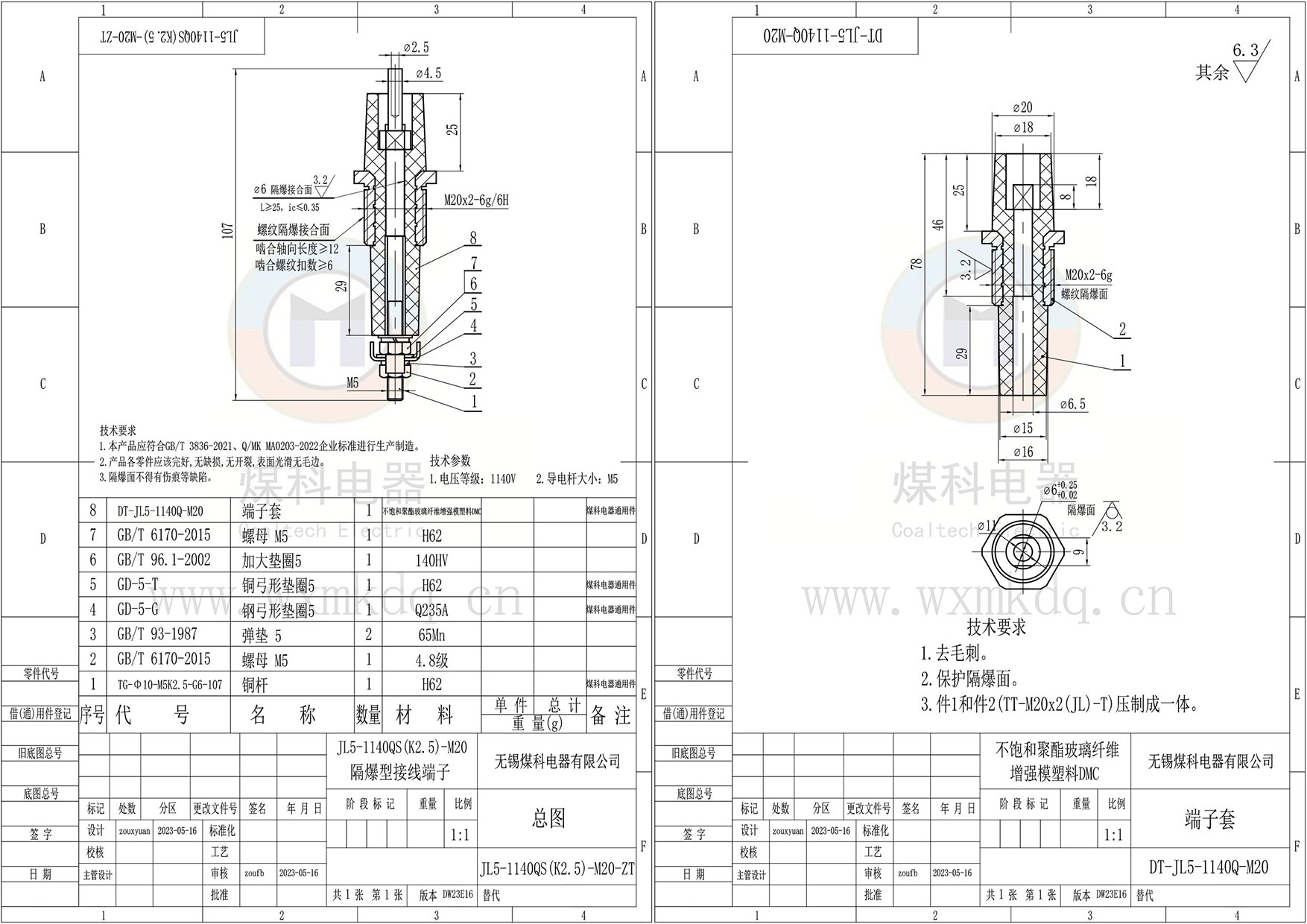 JL5-1140QS(K2.5)-M20 隔爆型接線(xiàn)端子