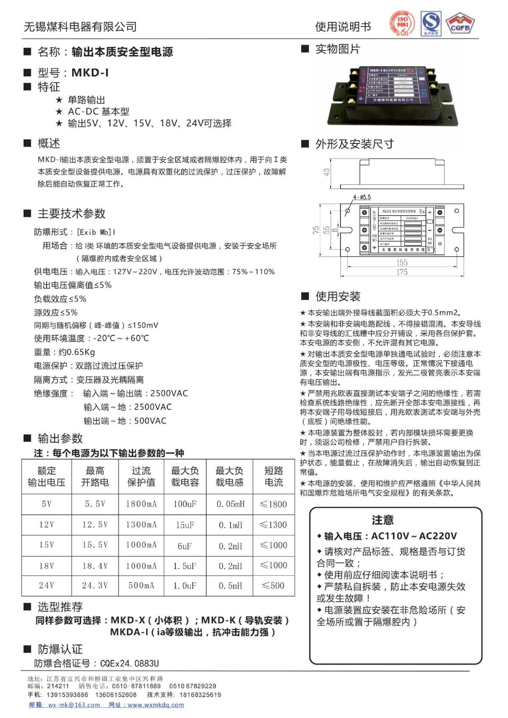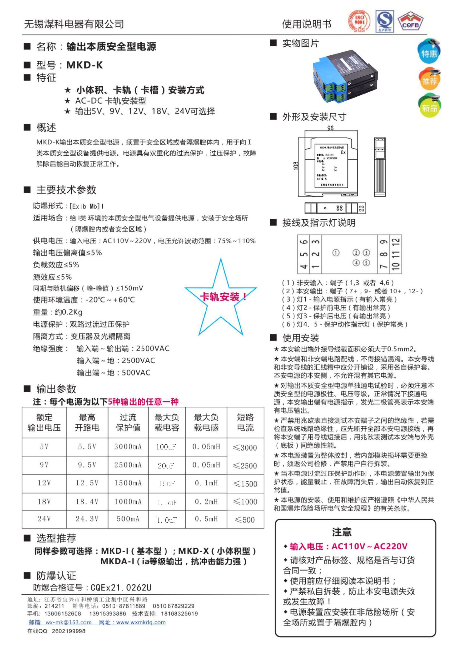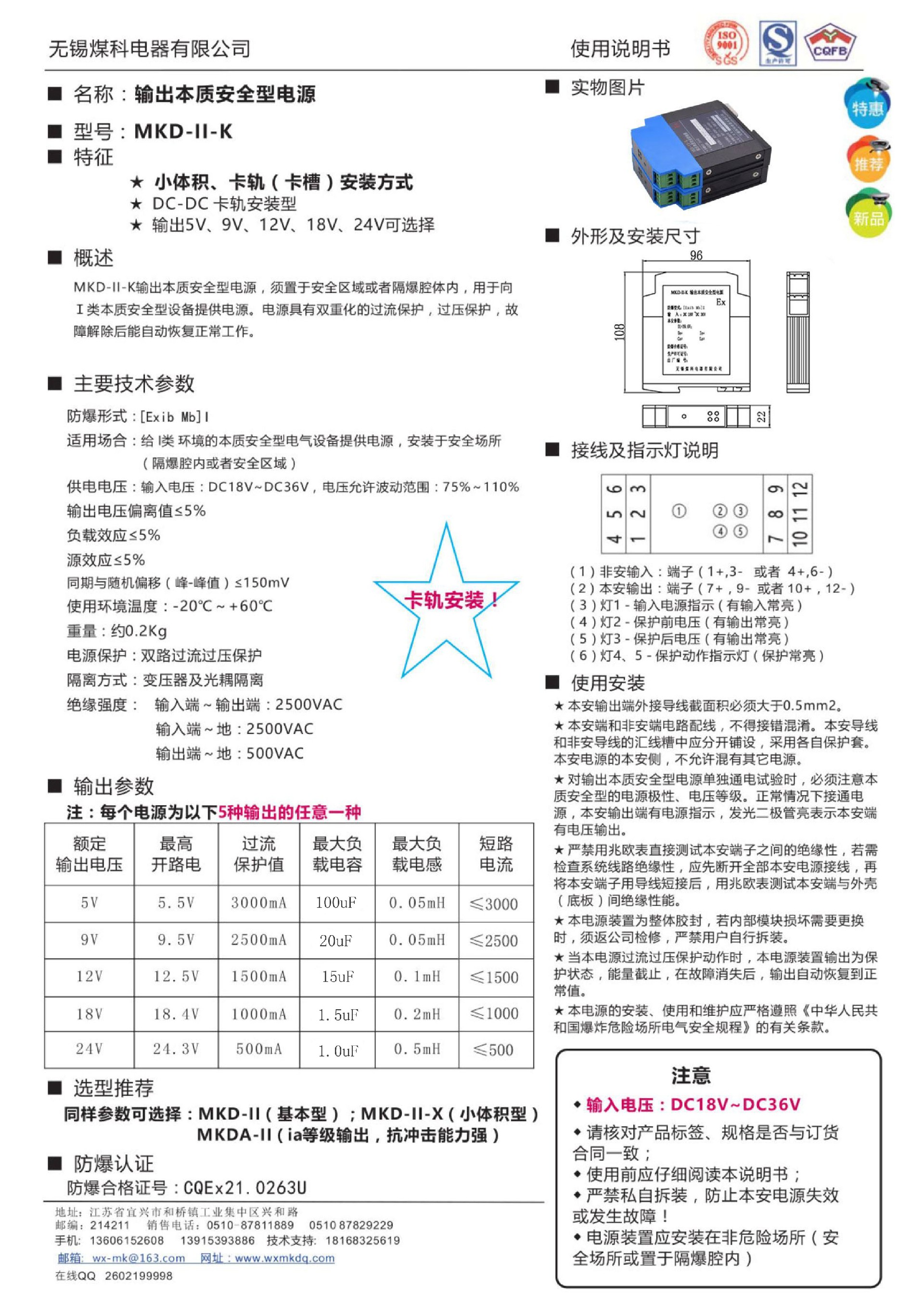 輸出本質(zhì)安全型電源MKDX-I說(shuō)明書(shū)