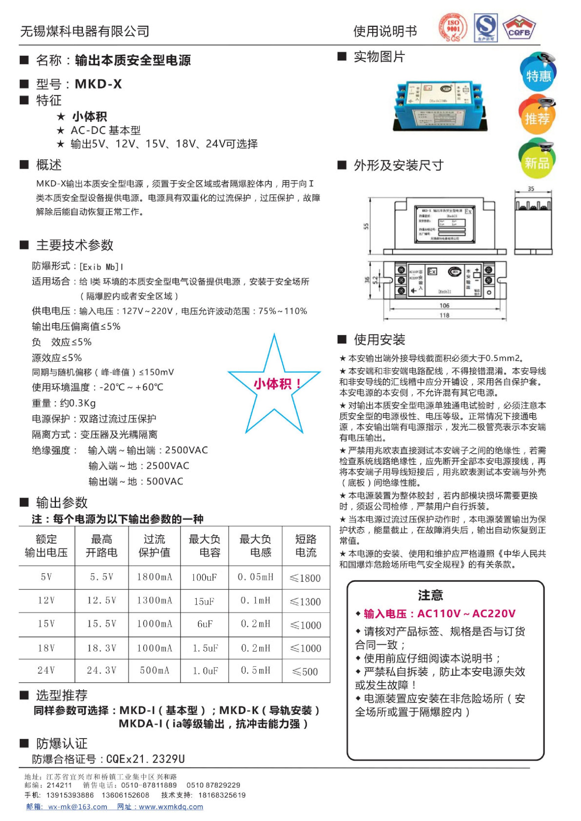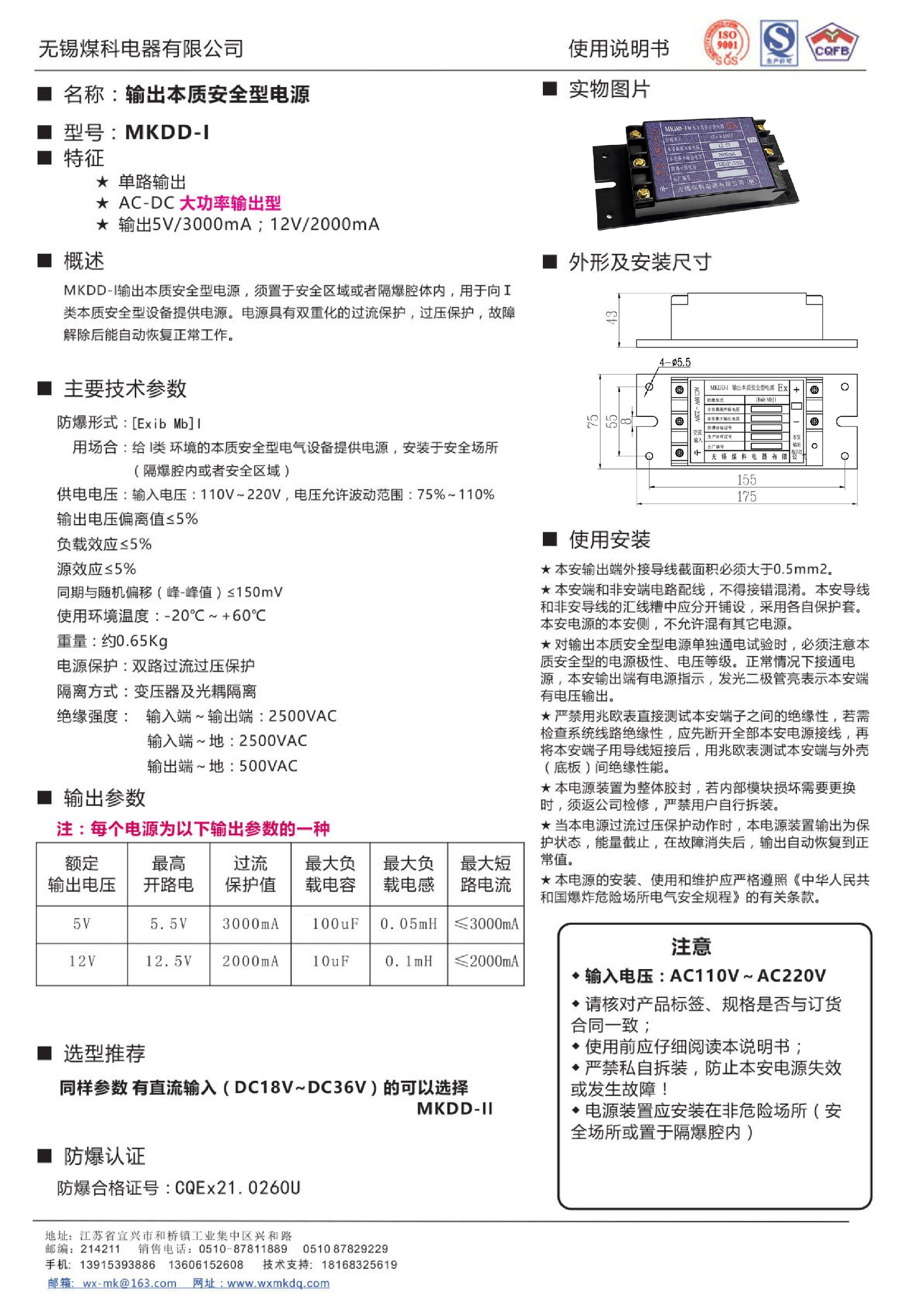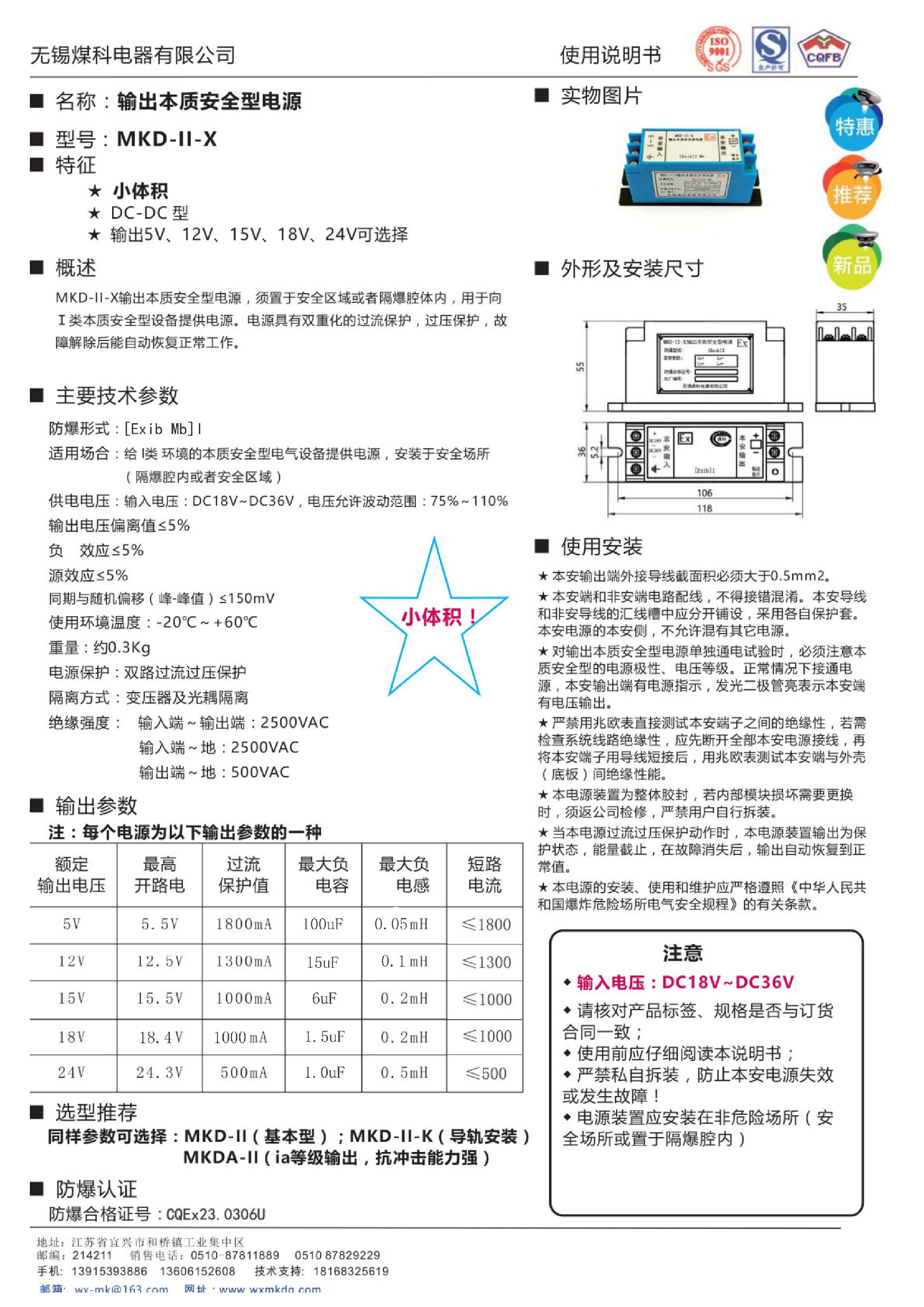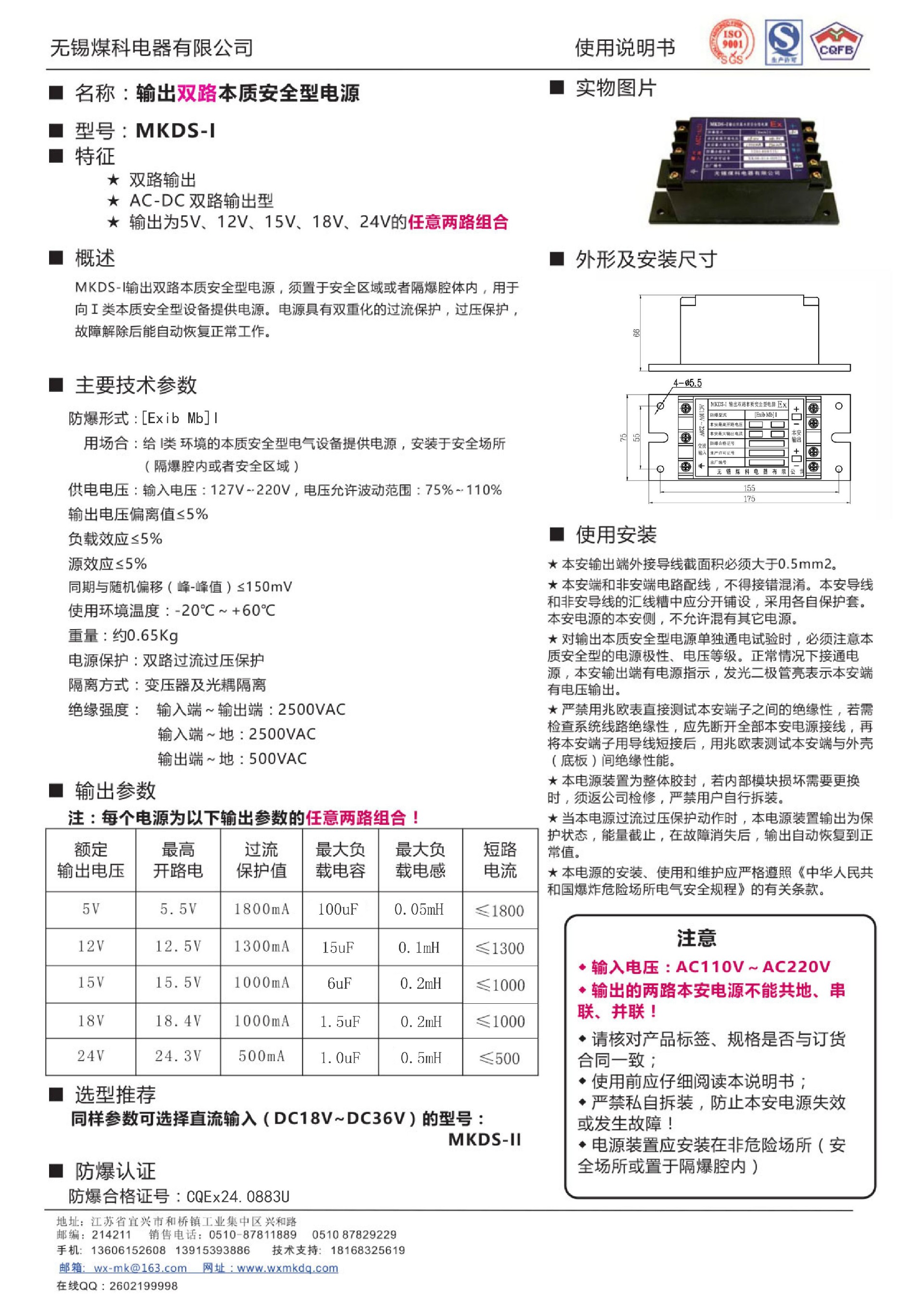輸出本質(zhì)安全型電源MKDX-I說(shuō)明書(shū)