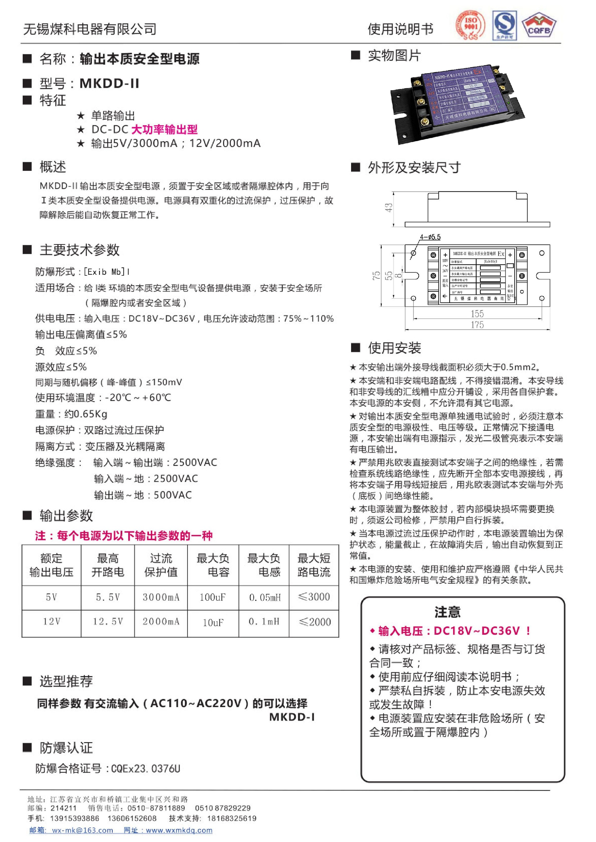 輸出本質(zhì)安全型電源MKDD-II說(shuō)明書(shū)