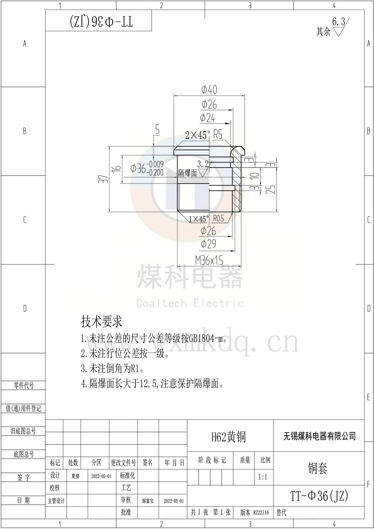 ◆ 安裝尺寸:Φ36。