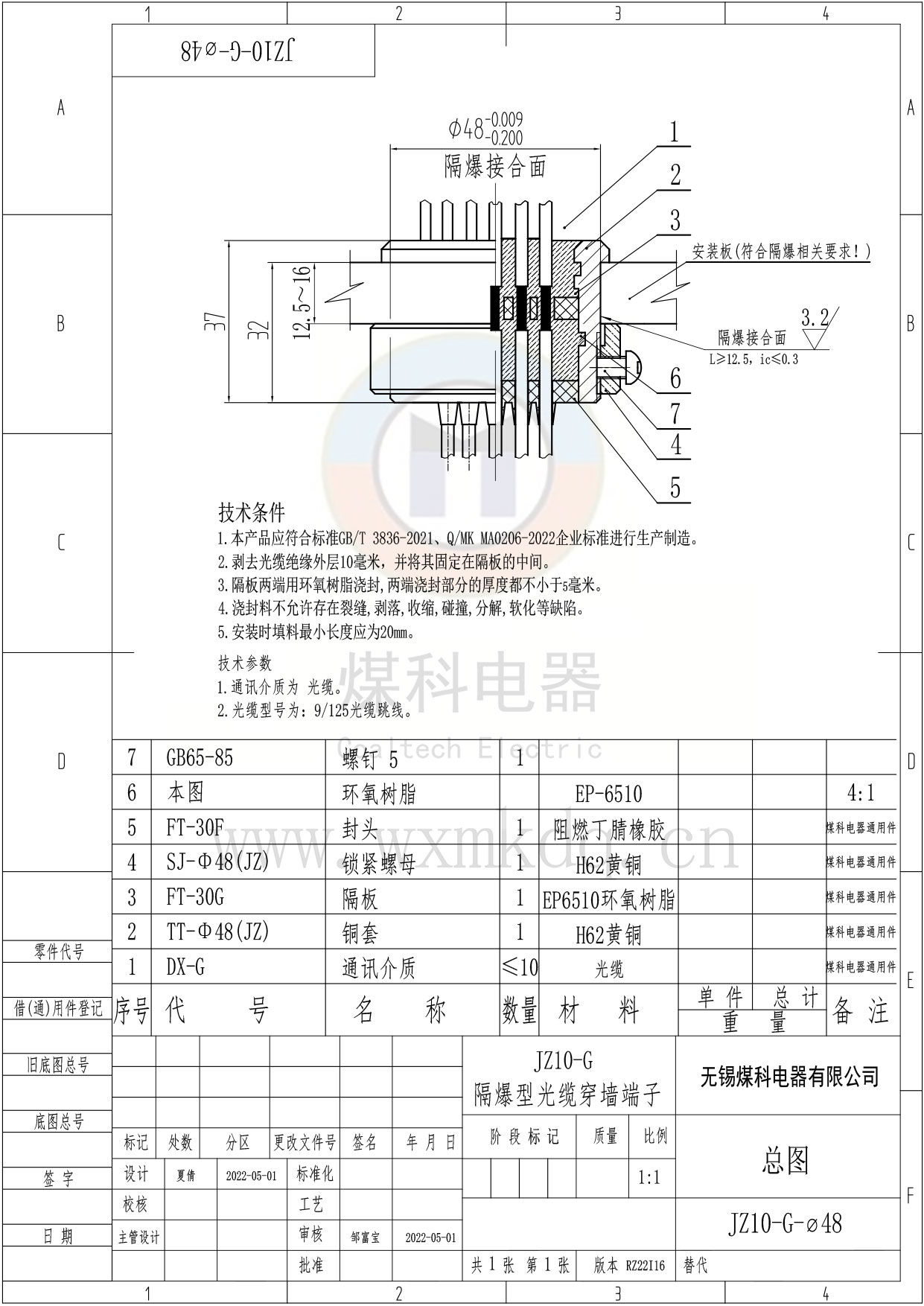下一篇:JZ10-G-Φ46隔爆型光纜穿墻端子
